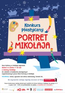 Dom Kultury w Gołdapi z okazji Mikołajek zaprasza dzieci do wzięcia udziału w Konkursie plastycznym, zorganizowanym przez Kino Kultura. Konkurs trwa w terminie od 25.11.2025