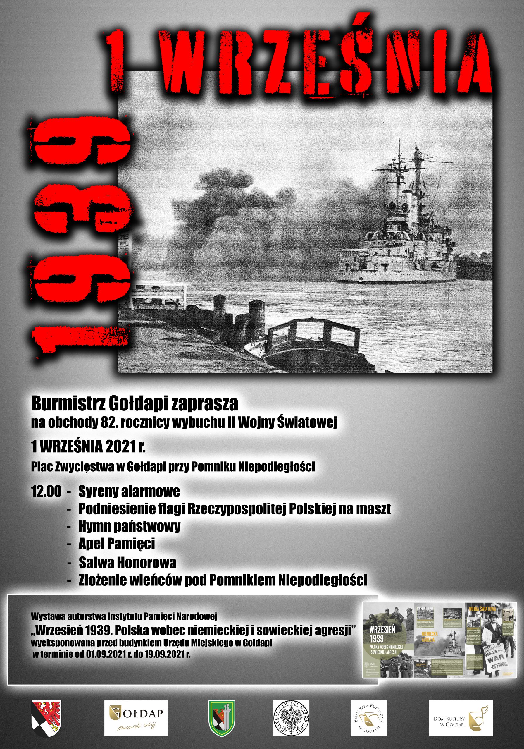 Burmistrz Gołdapi Tomasz Rafał Luto zaprasza na uroczystość upamiętniającą 82. rocznicę wybuchu II Wojny Światowej, która odbędzie się w środę 1 września o godzinie 12.00…