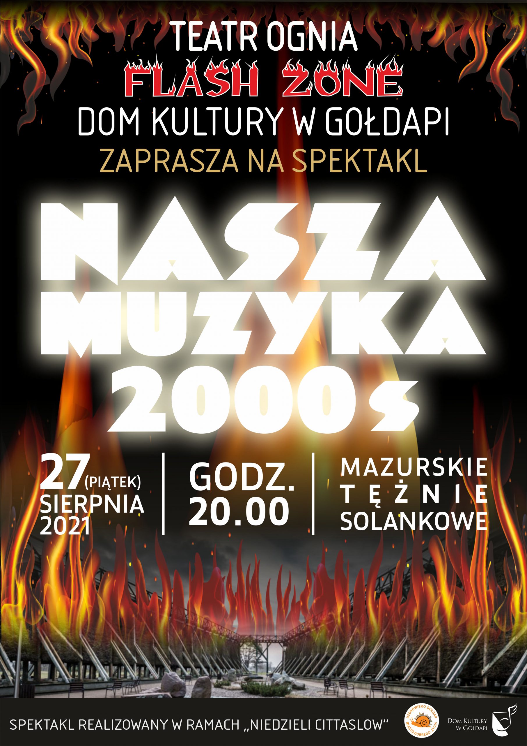 Dom Kultury w Gołdapi zaprasza na spektakl Teatru Ognia Flash Zone pt. „Nasza Muzyka 2000’s „, który obędzie się 27 sierpnia (piątek) o godzinie 20:00…