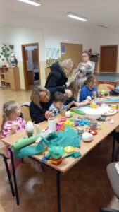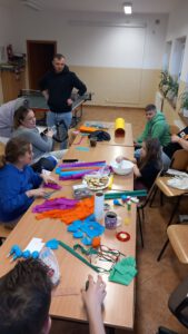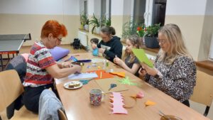 Podczas zajęć uczestnicy wspólnie tworzyli prace rękodzielnicze, rozwijając swoje umiejętności manualne oraz kreatywność. Nie zabrakło także miłej, rodzinnej atmosfery, uśmiechu i wspólnej zabawy.