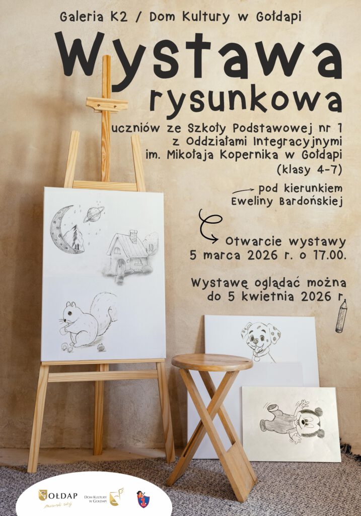 Galeria K2 w Domu Kultury w Gołdapi zaprasza na wyjątkową wystawę prac plastycznych uczniów klas IV–VII Szkoły Podstawowej z Oddziałami Integracyjnymi im. Mikołaja Kopernika w Gołdapi.